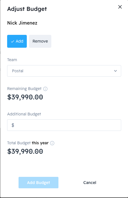 Next, choose to either Add or Remove budget. Then enter the additional or removed budget amount and confirm.