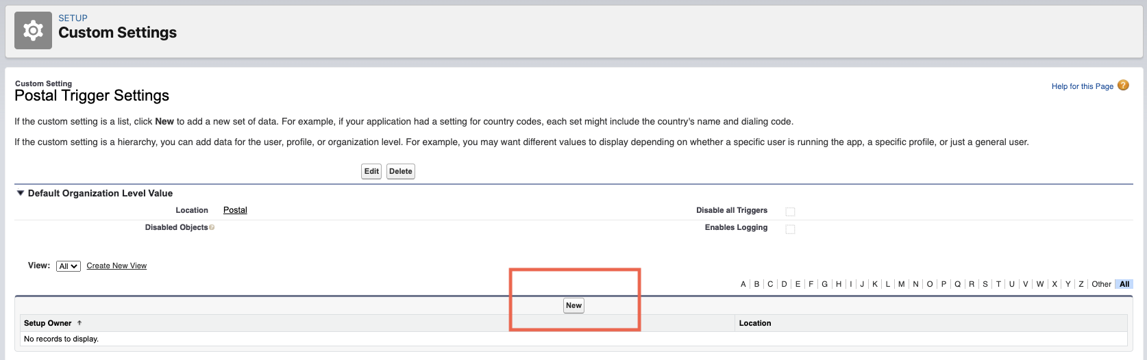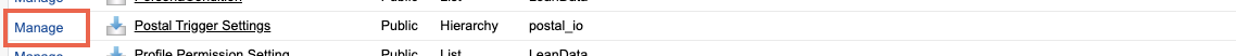 3. You should see an entry for Postal Trigger Settings, click Manage