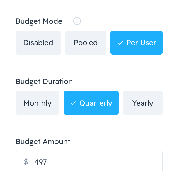 If your team member started the month with a $100 budget but is currently at zero and you want to add $25 more dollars for them to spend, you would change the budget amount to $125.