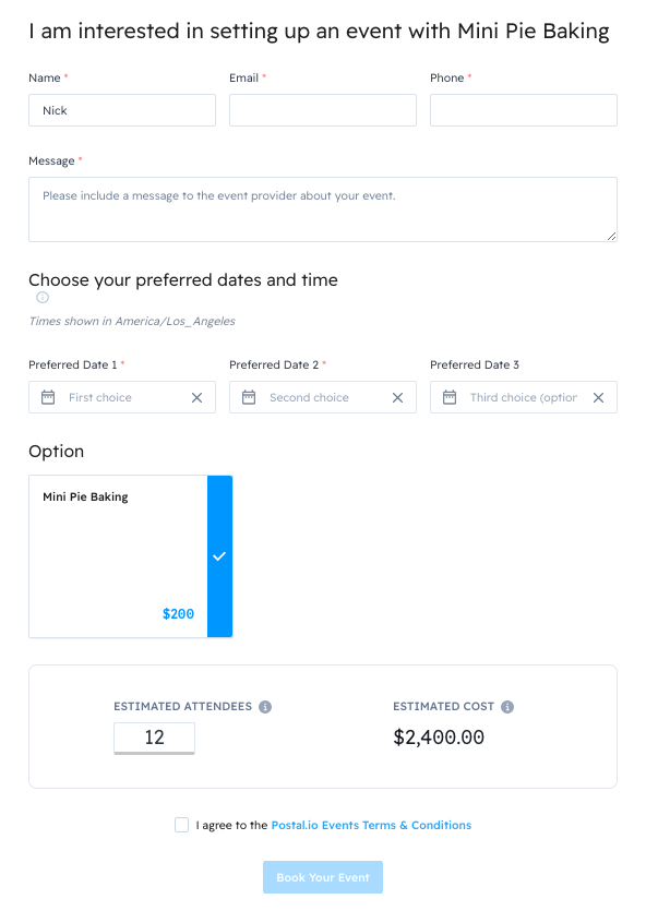 All Events start with a request. You can do this by first finding the Event you are looking for in the Events Marketplace and selecting it. This begins the booking process.