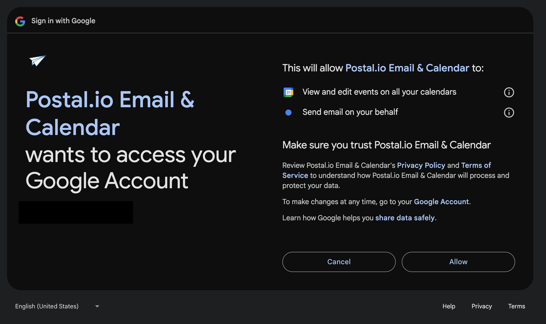 Note: Postal can only send emails and cannot read your emails. With the integration turned on, you will see the emails sent in your 'Sent Mail' folder.