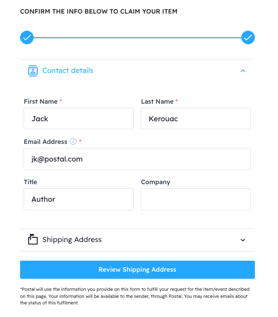 Confirm your Contact Details and Shipping Address then