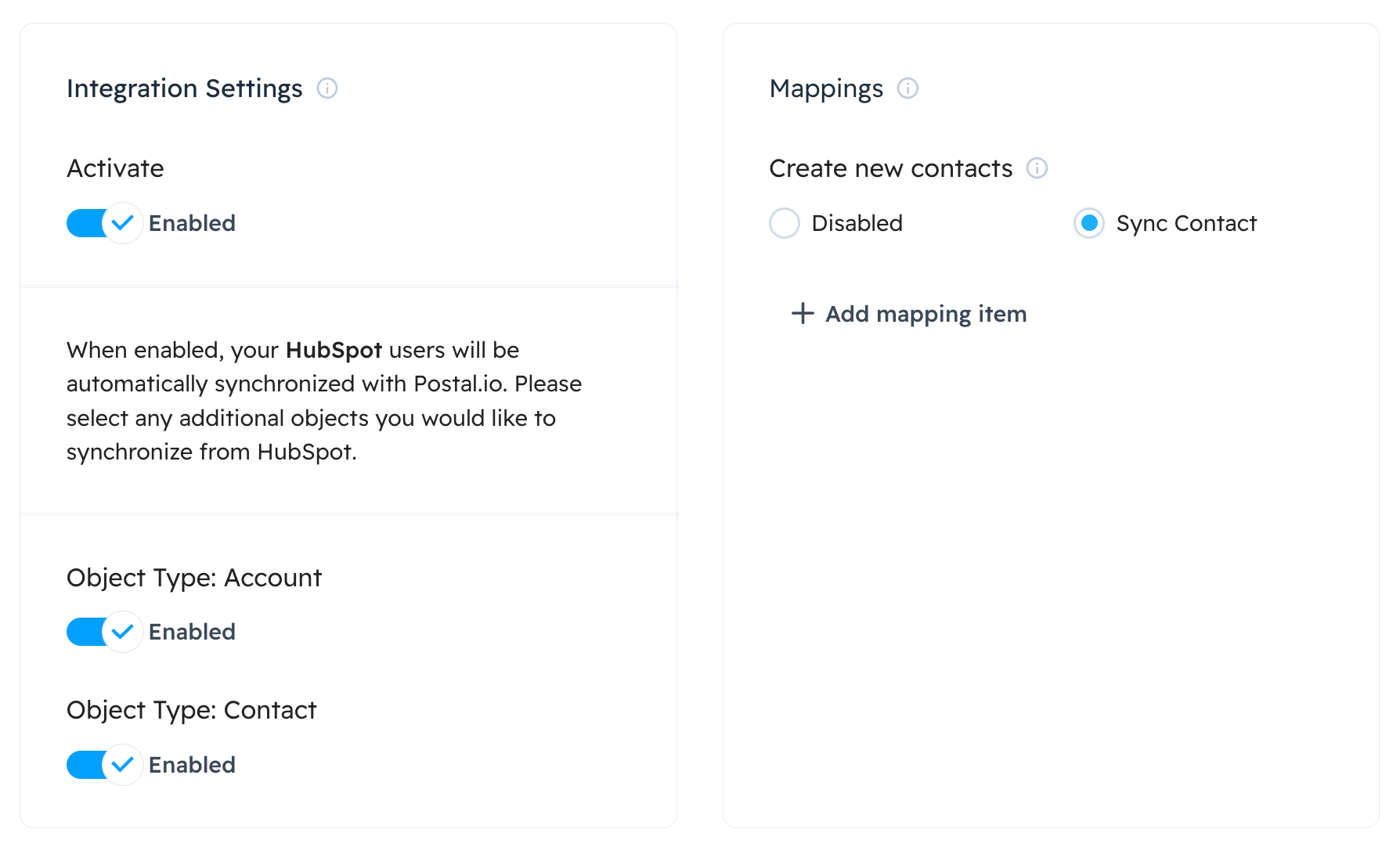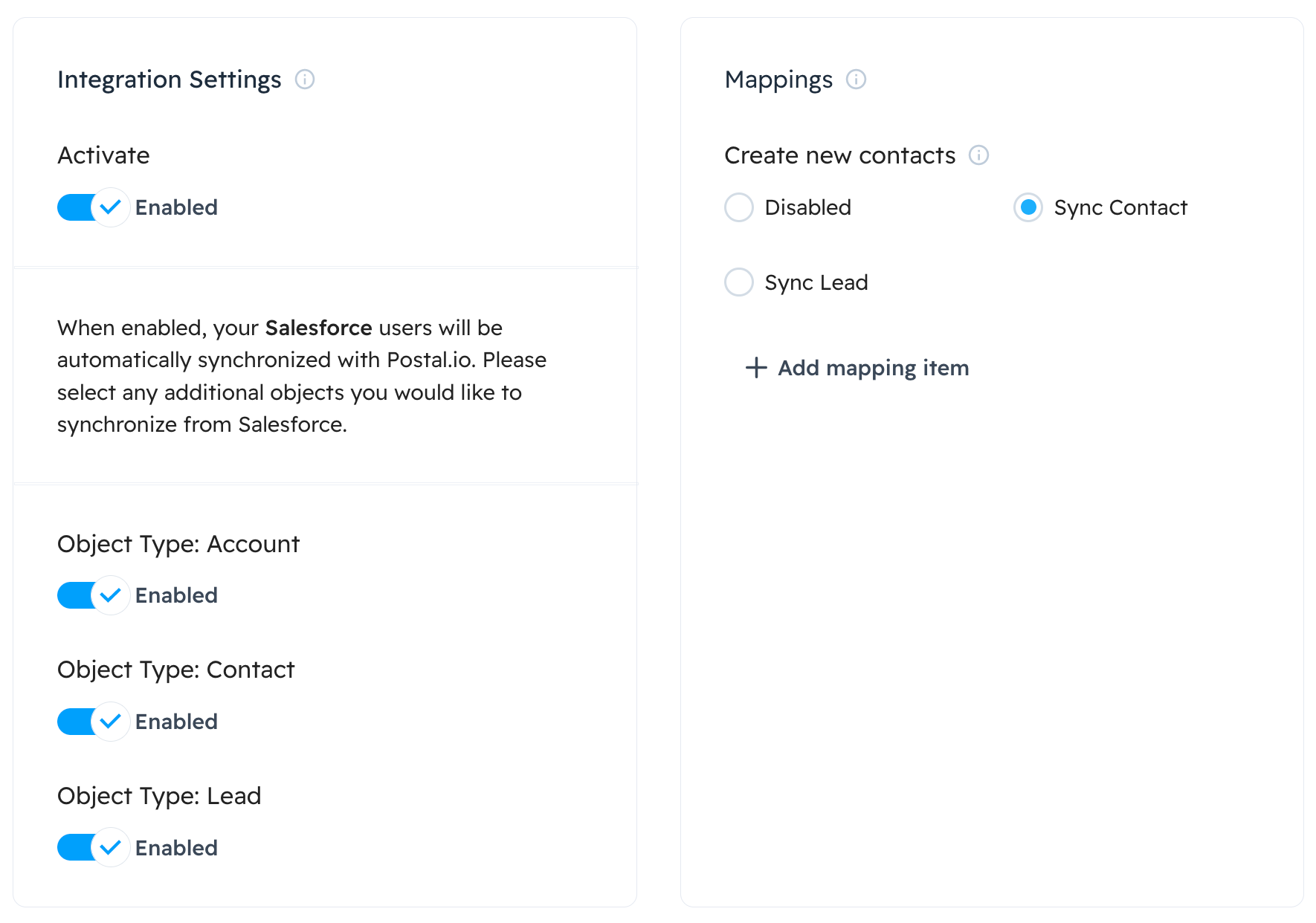Contact Mapping just means that any new contact you create in Postal can be communicated back to your CRM. Usually, the flow works forwards with contacts flowing from your CRM into Postal through the integration. However, in certain cases, you may create new contacts while sending in Postal that you don't want to have to recreate in your CRM. That's where mapping comes in.