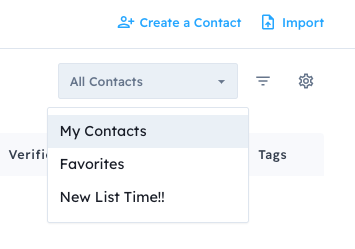 Lists will be displayed under the All Contacts section in the top right of the Contacts page.