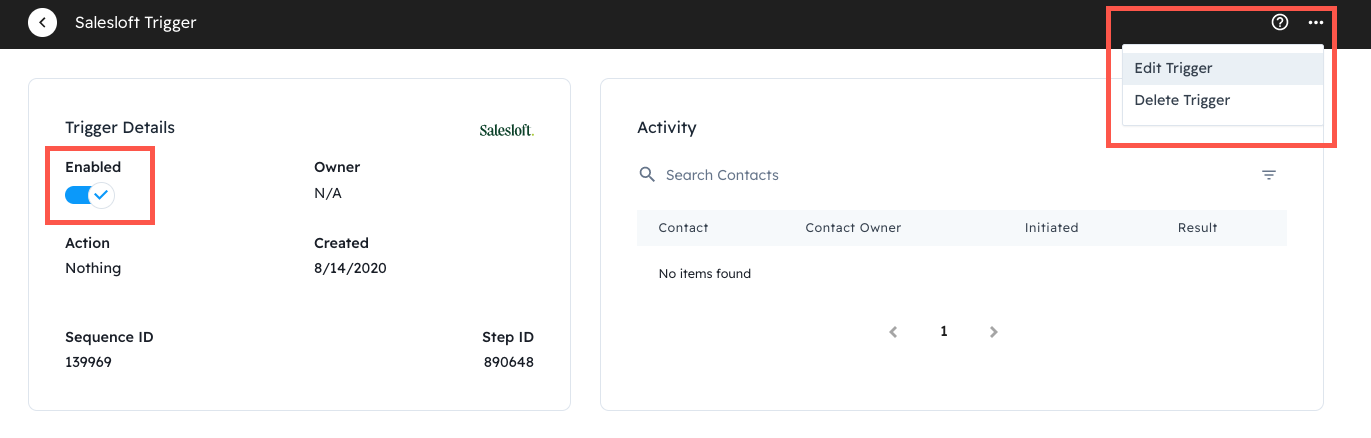 This Trigger detail page also shows you the activity on the trigger including the contact, the contact owner, the date the trigger was initiated, and the end result.