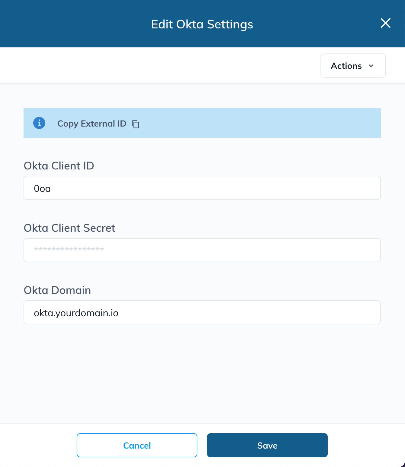 Step 6: Enter the Client ID, Client Secret, and Okta Domain from Okta into the Postal settings and click ‘Save’