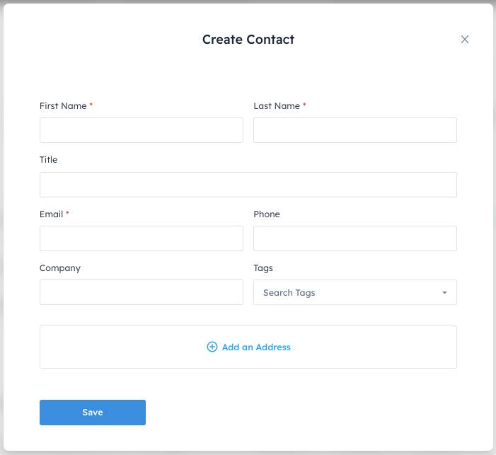 - You must have the Manager or User role to add contacts