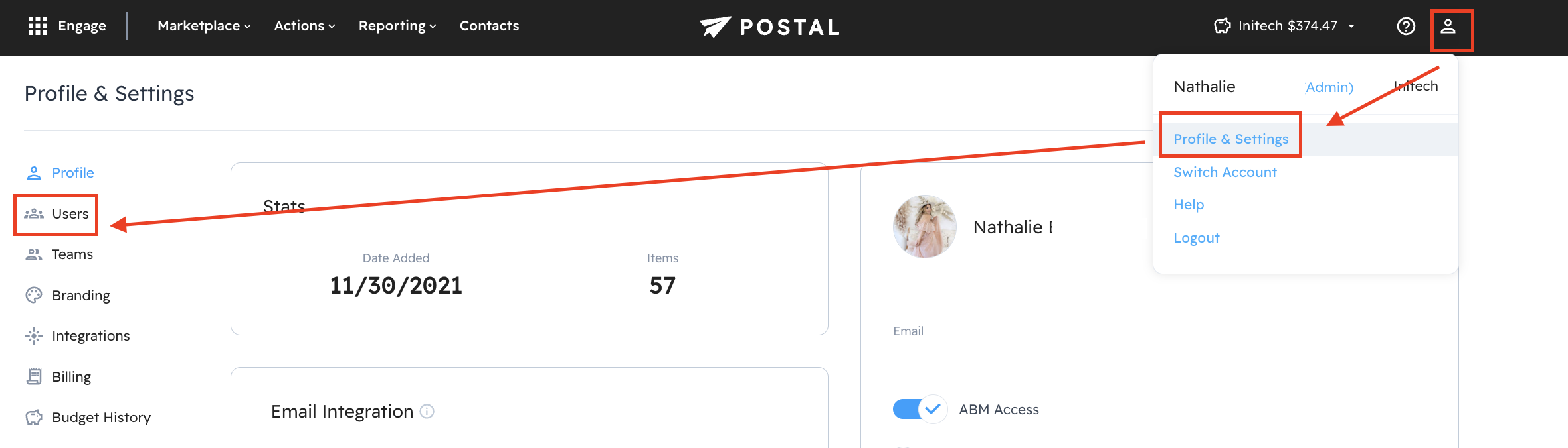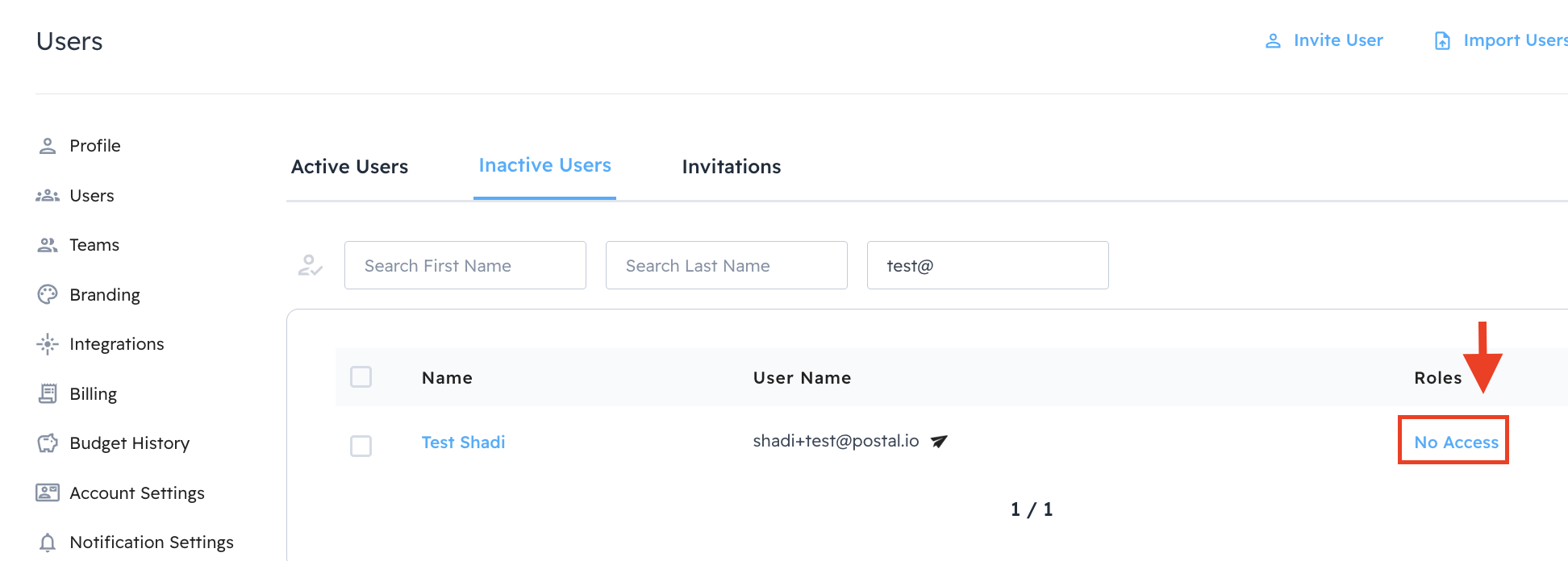 Note: if you do not wish your user to be alerted to their access to Postal, then leave the Send User Email box unchecked.