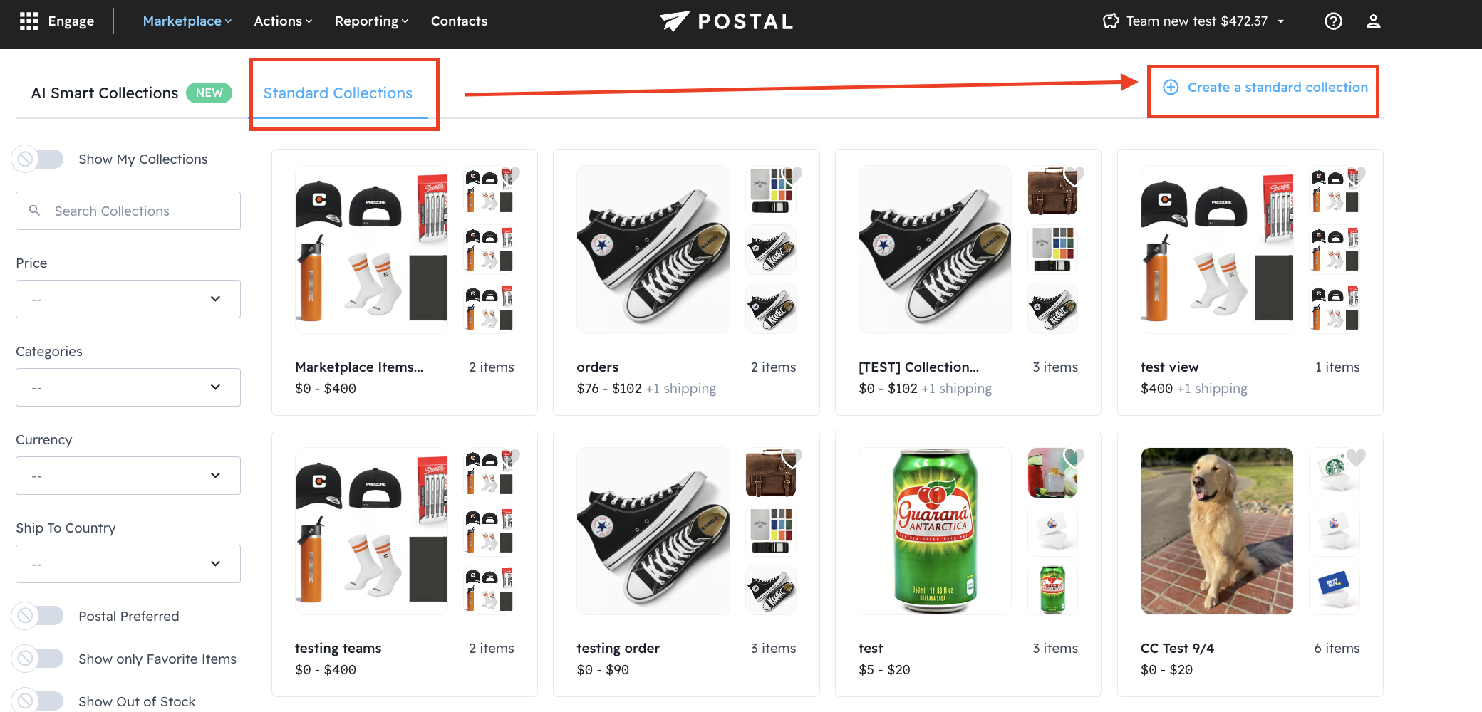 Select Standard Collections and to the top right select +Create a standard collection