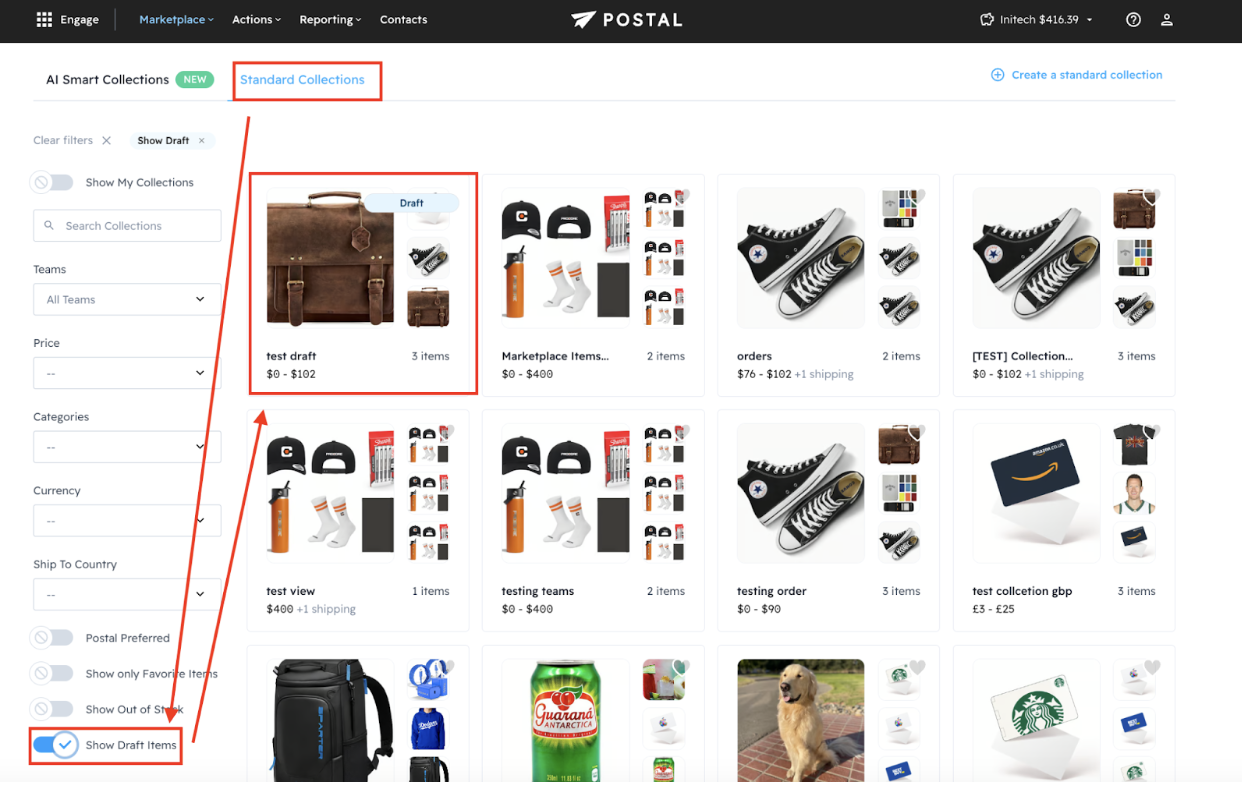 Once you have built your Collection you’ll need to enable it in order to send it. You can do this by toggling on Show Draft Items.