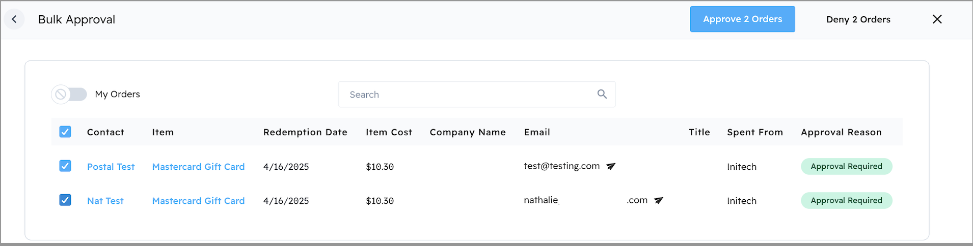 Click on review now and select all the orders you’d like to deny or approve. You can do them in bulk or select each order individually.