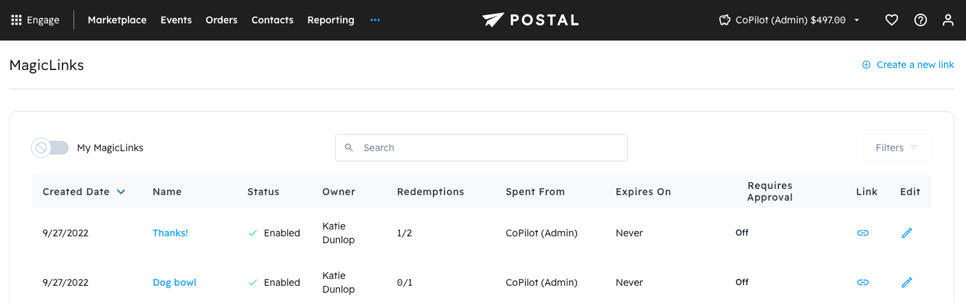 From this page, you can also edit or delete your MagicLink.