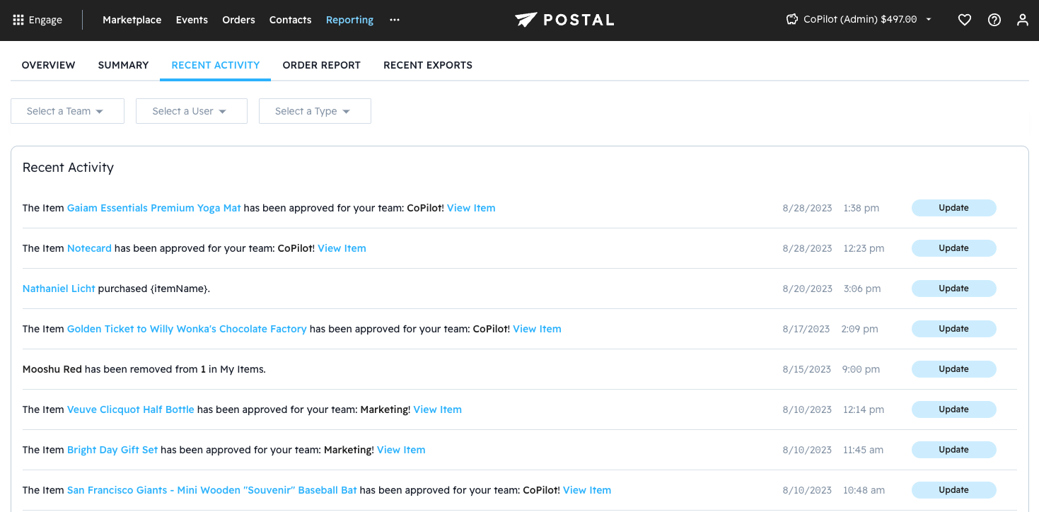 Checking to see what has been sent, to who, and the status is quick and easy by looking at the Recent Activity Tab within the Postal App.