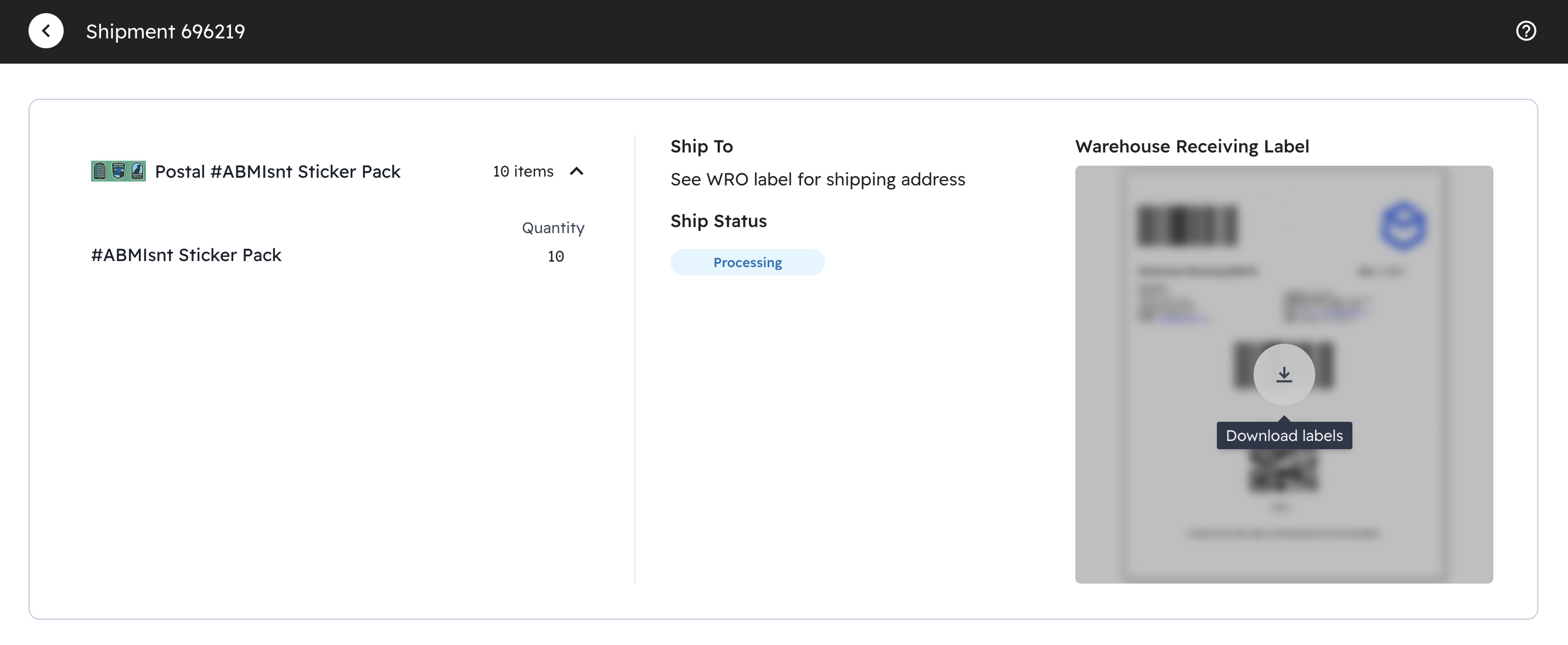 Create Warehouse Receiving Order (WRO) labels to ship items to the warehouse