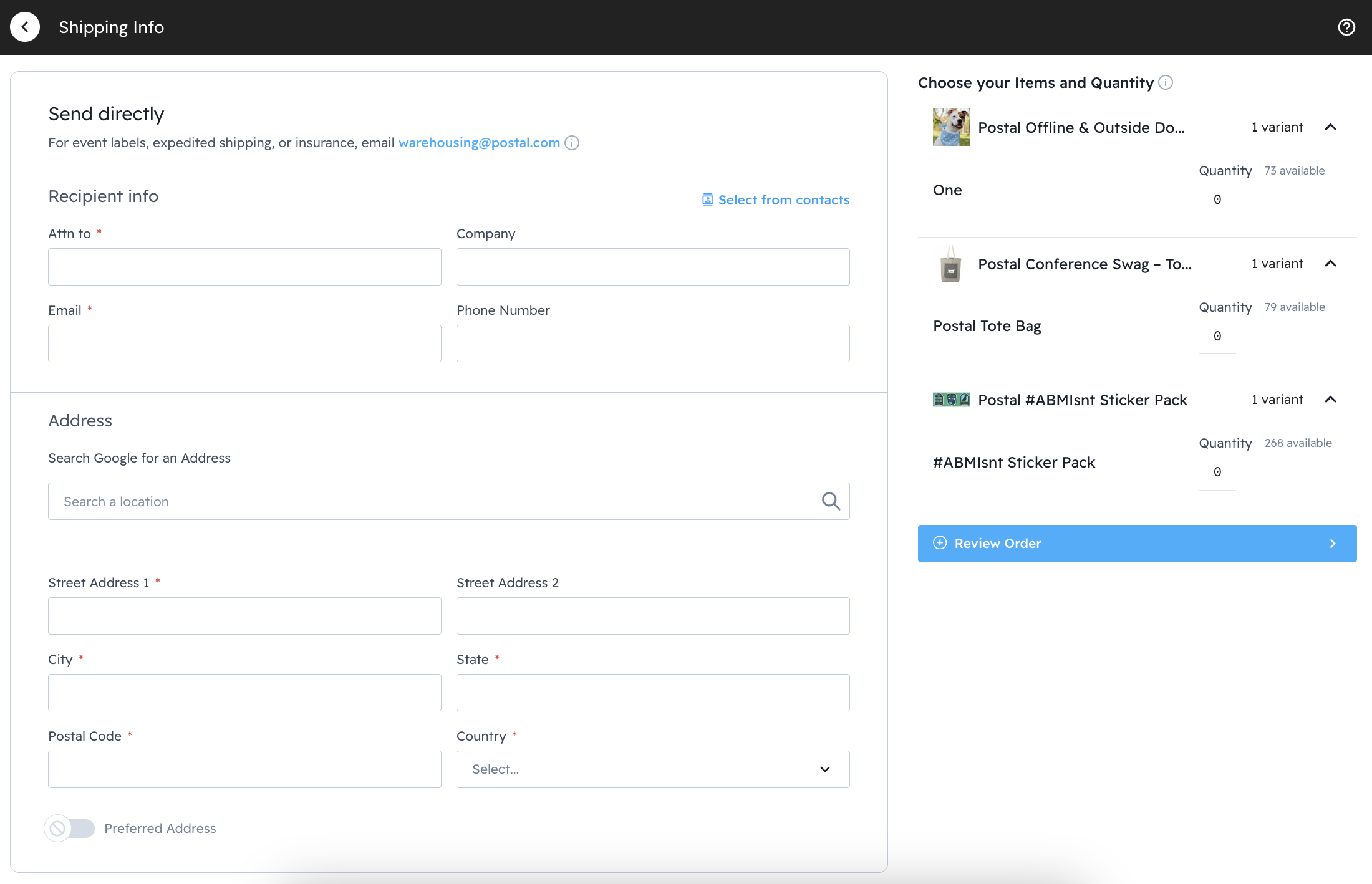Lastly, email the tracking to warehousing@postal.com along with the associated WRO#. This helps the team immensely by notifying them when a package is being delivered.