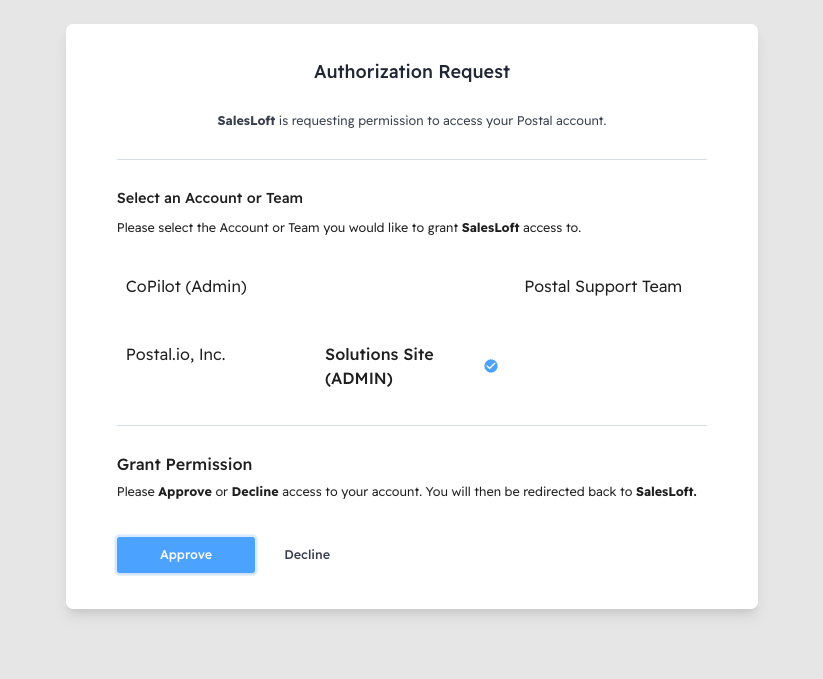 You'll need to have Admin access in both Postal and its equivalent in SalesLoft.