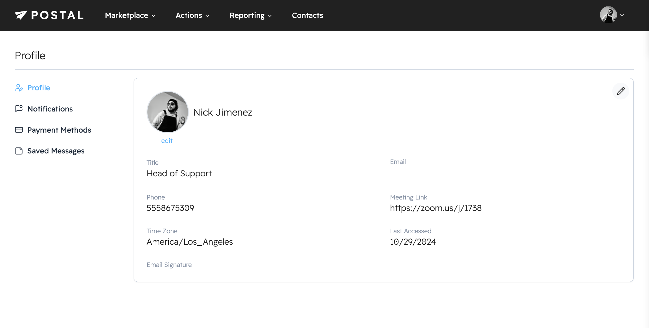You can also update all of your information including Name, Email, Phone number, Title, Meeting Link, Time Zone, and add an Email Signature.