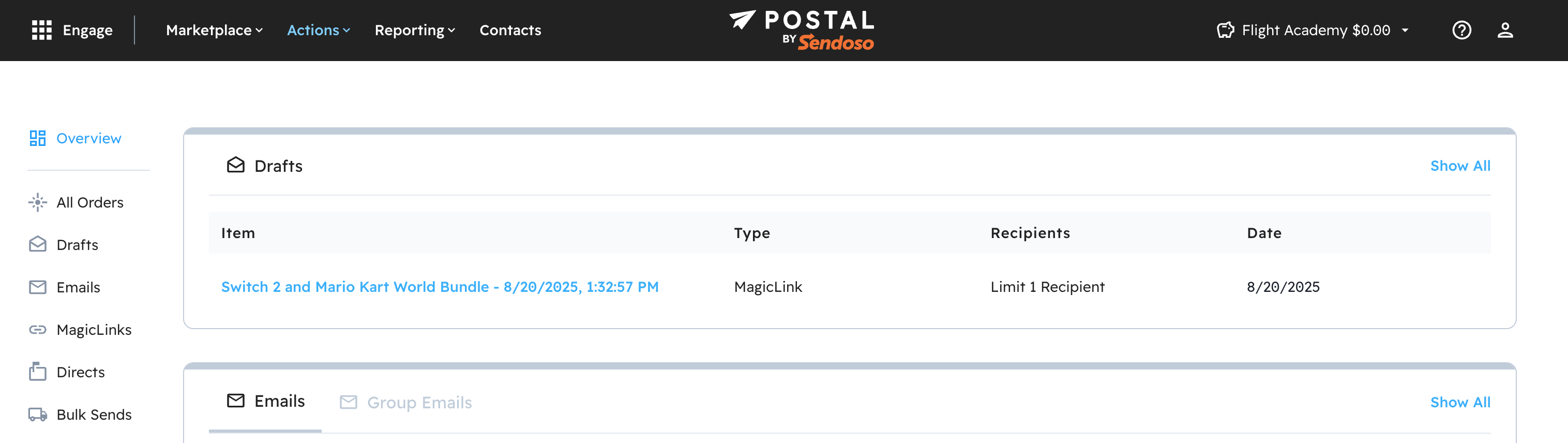 After saving your draft, you can access it from the Orders tab. Selecting the name of the draft will allow you to continue sending.