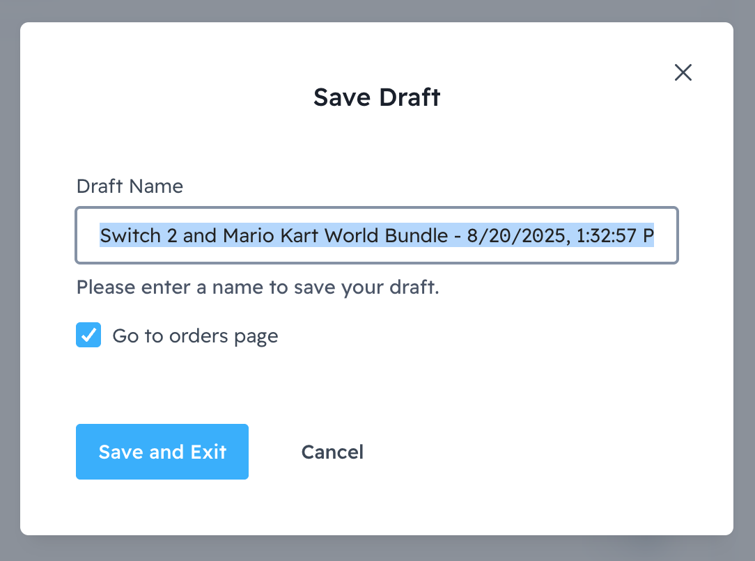 You will be prompted to name your draft. Next, select Save and Exit.