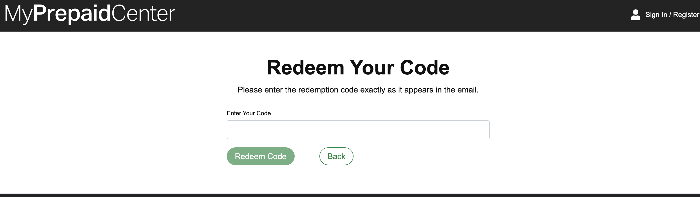 Step 5: Time to activate your Gift Card. Once you have selected the redemption link, you will be taken to a new page (myprepaidcenter.com/redeem) to begin the activation process.