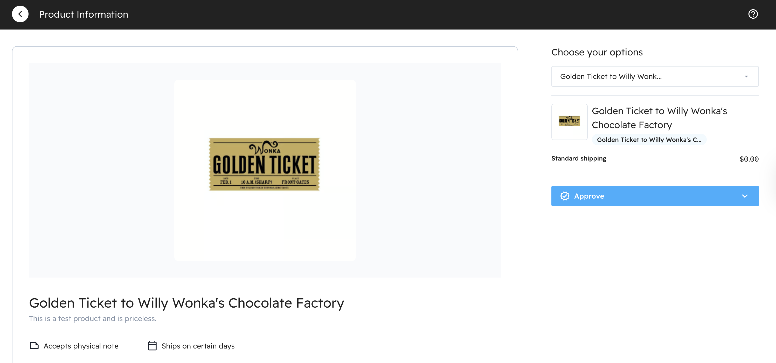 The Golden Ticket is a fake, cost-free item that allows you to see the recipient experience start to finish without deducting from your Budget or actually sending an item.