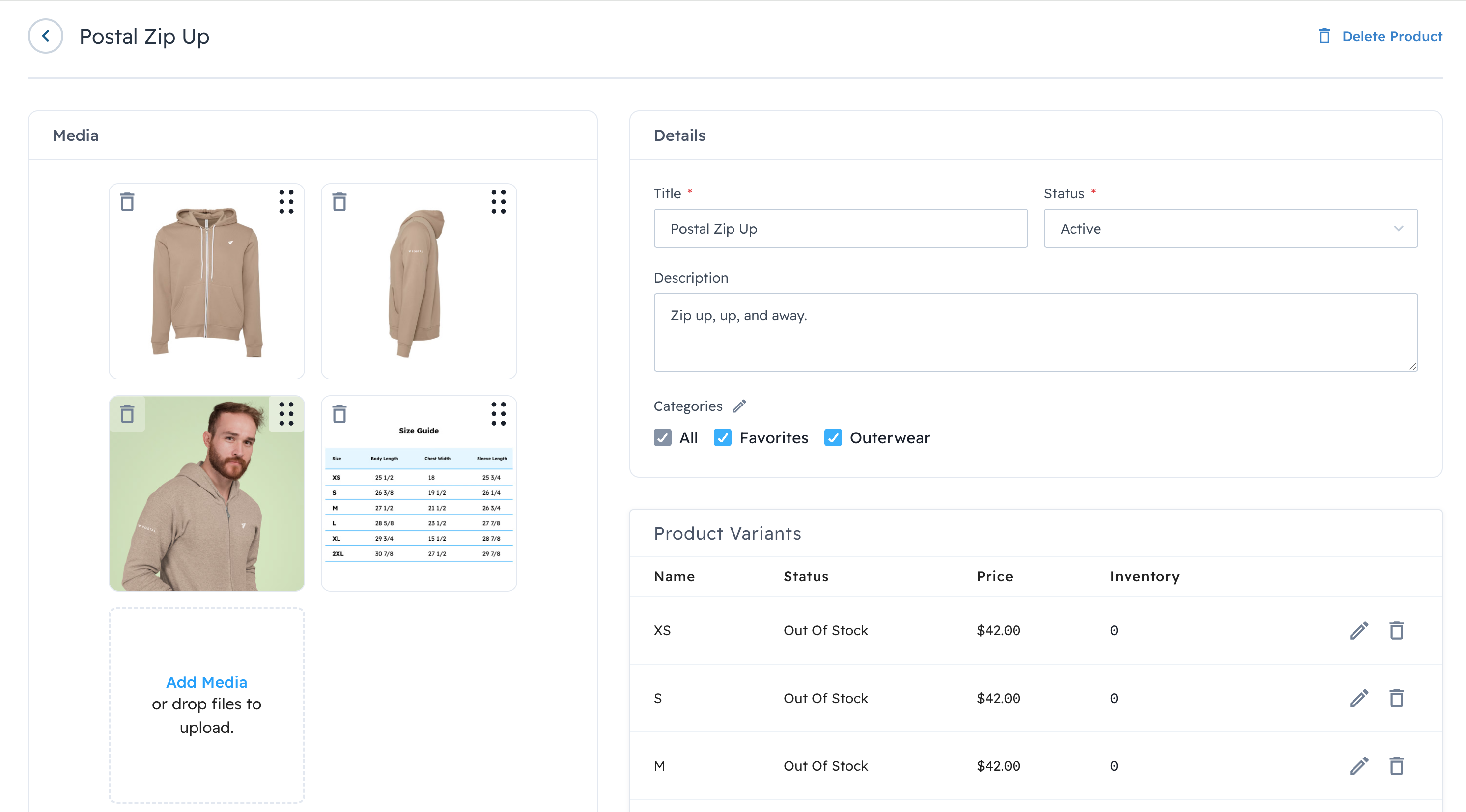 - Media - images that are displayed to customers (Recommended size 1200px by 1200px)