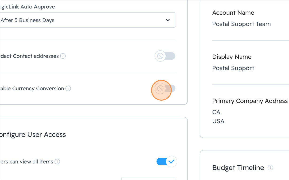Note: only Postal Admins can enable Currency Conversion