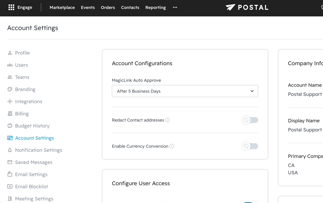 As an Admin in Postal, you’ll want to make sure you are on the main Account team. This team is usually named after your business. Then follow this path: