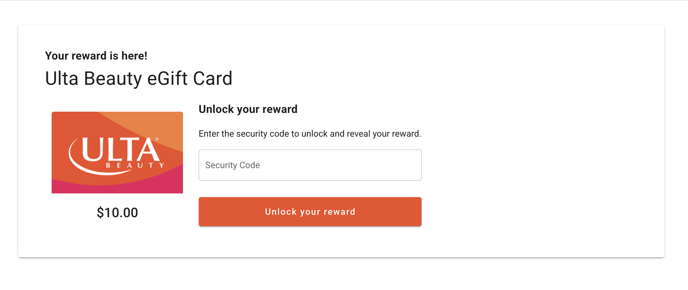 Step 9 - Follow the steps to register your card. Select 'Unlock your reward'.