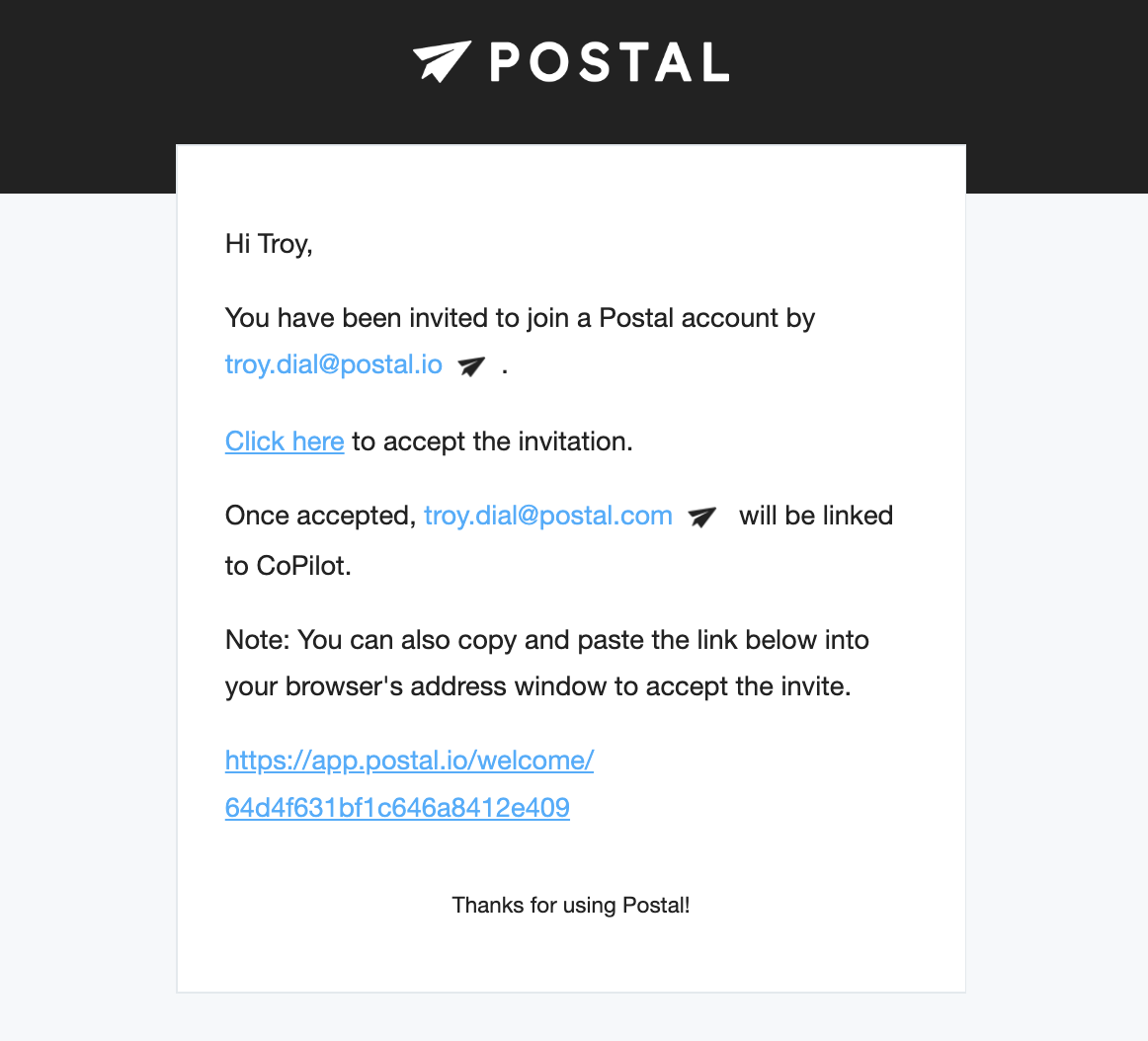 Clicking on this link will allow you to accept your invitation and access all that Postal has to offer!