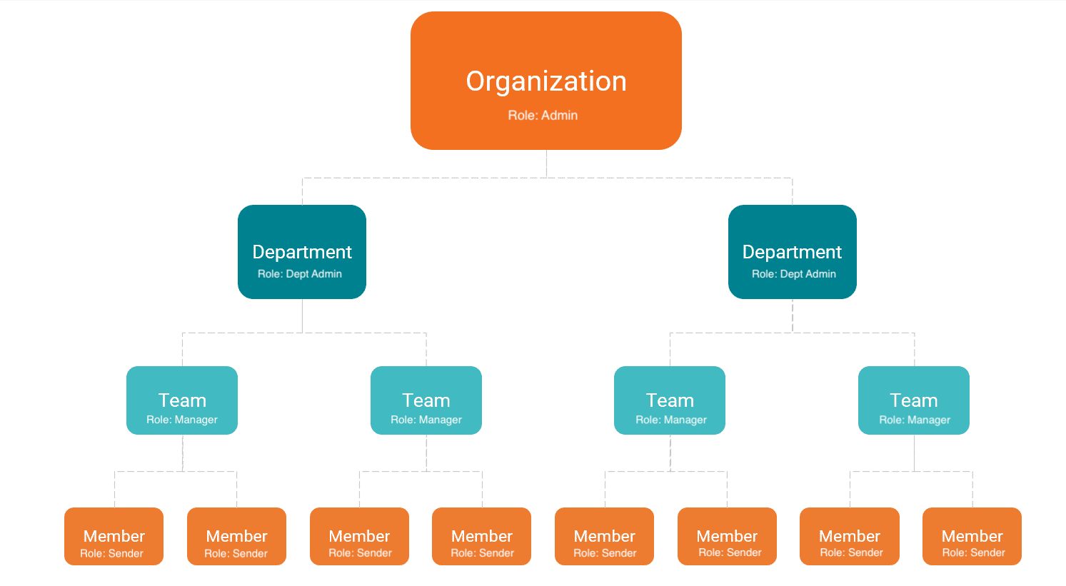 Admins are at the top and have access to everything in their instance. Department Admins only have access to the managers and senders that are within their department.